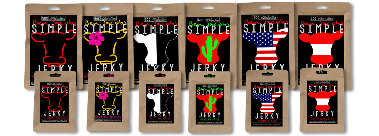 Rakouské hovězí masoPro naše Simple Jerky používáme výhradně rakouské hovězí maso z pastvin. Náš dodavatel surového masa zajišťuje humánní chov, krátké přepravní vzdálenosti a nepřetržitou sledovatelnost původu.