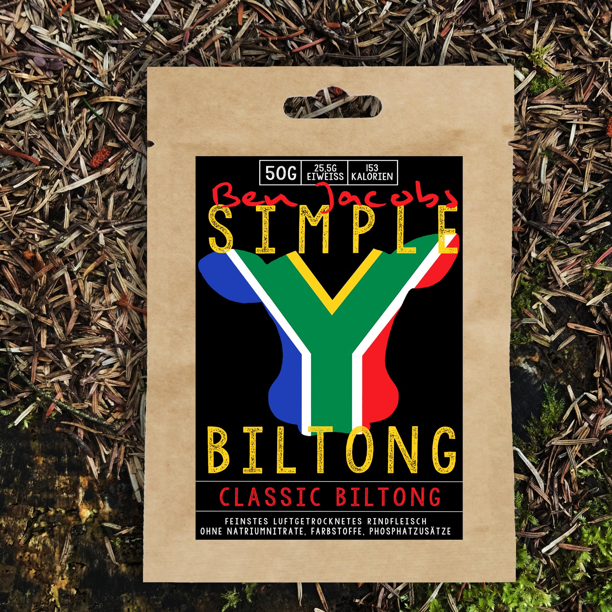 Podle jihoafrické tradice je náš Classic Biltong sušen na vzduchu po několik dní. Žádné teplo, žádný dřevěný kouř. Koriandrová semínka, bílý a černý pepř, cibule a sůl dodávají našemu Classic Biltong jemné aroma, ve kterém se neztratí čistá chuť masa. Díky sušení na vzduchu zůstává každý kousek měkký a jemný.